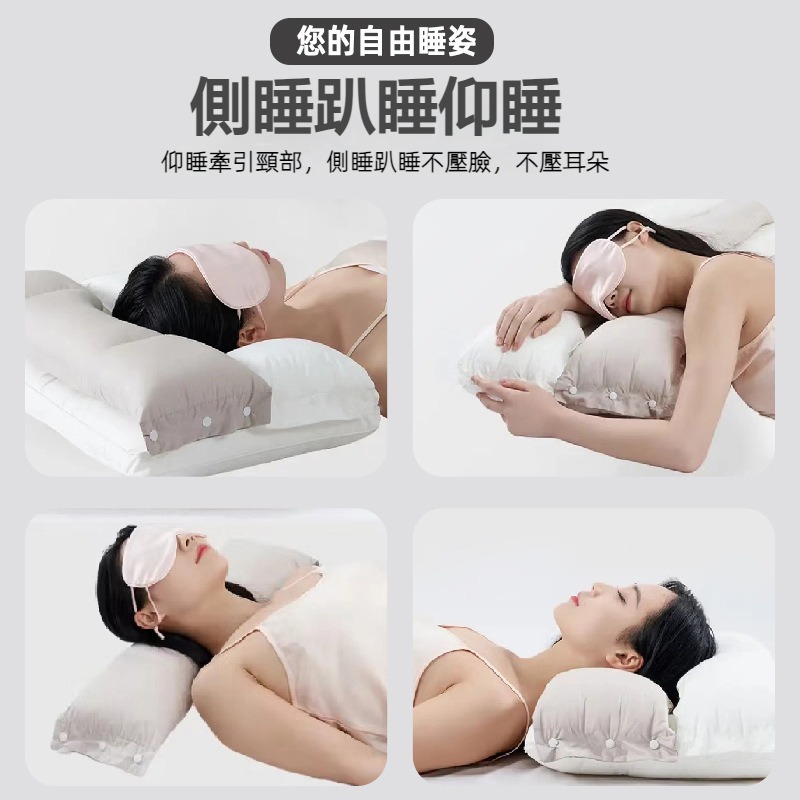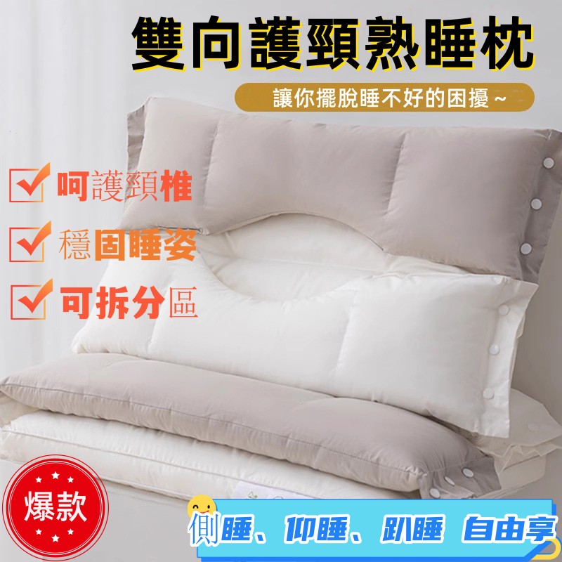 【睡覺脖子再也不落空!!】 雙向護頸熟睡枕!一枕雙高度!側睡仰睡趴睡都舒服!一枕3高度,解放所有睡姿!!雙倍填充,久睡也不塌!枕頭可分拆,機洗好簡單!!枕頭軟硬分區,貼合頸椎與頭部!!分區支撐,護頸一夜好睡!!