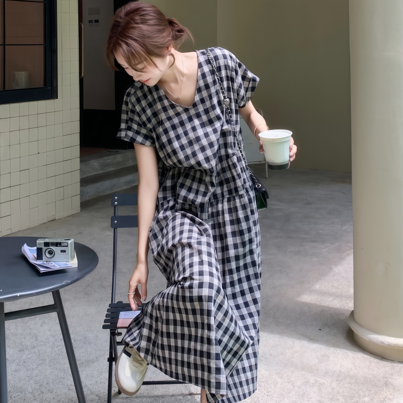 [1]【文藝格子連衣裙 免郵到手價!】 1入組僅需NT1050